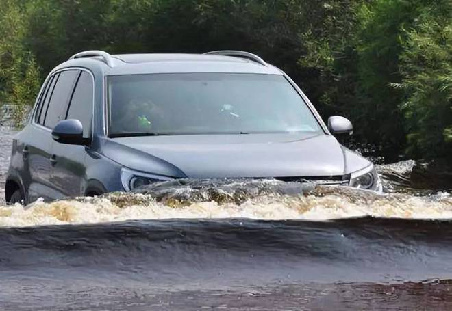 可以通过水面到达轮胎高度判断涉水深度,通常情况下水面超过轮胎一半的高度,就不适宜出行了,出行极易发生进气道熄火,积水漫入车厢的情形。