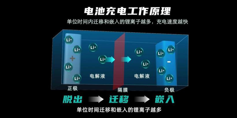 从技术的角度出发,锂电池的整个充电过程,可以被简单地分成3个步骤:脱出、迁移、嵌入。相对应的,如果想要提高充电效率,则需要使得锂离子在单位时间内,迁移和嵌入的足够多。而这就对电解液、隔膜,以及正负极材料提出了更高的要求。