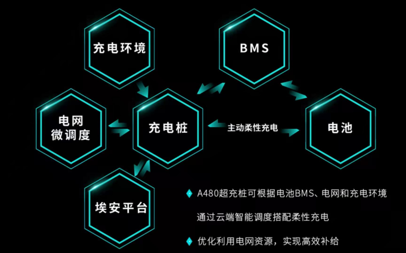另外不得不提及的一点是,A480超充桩还有着智能技术的嵌入。简而言之,在日常生活中,充电环境、电池BMS,以及电网资源等往往会处于一个不稳定的状态,而这种情况下,A480超充桩就可以借助智能技术,优化利用电网资源,并进一步实现高效补能。