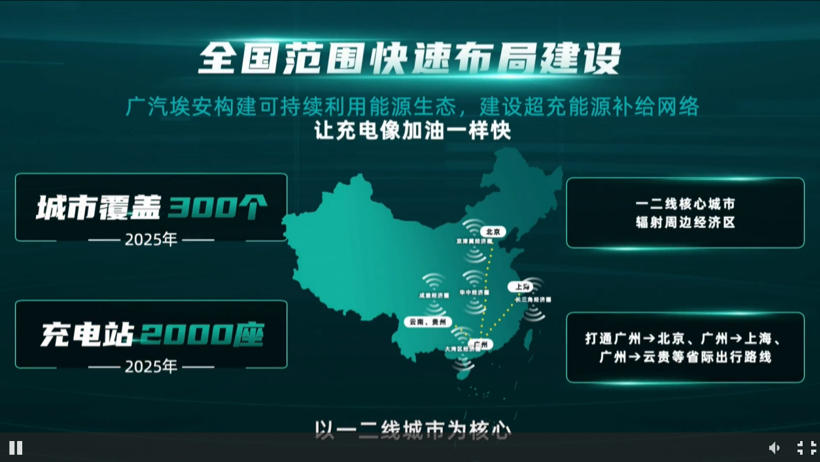 根据规划,到2025年的时候,广汽埃安将铺设2000座超充站,覆盖约300个城市,进而打通从广州到北京、到上海,以及到云贵等其他省级地区的出行路线。