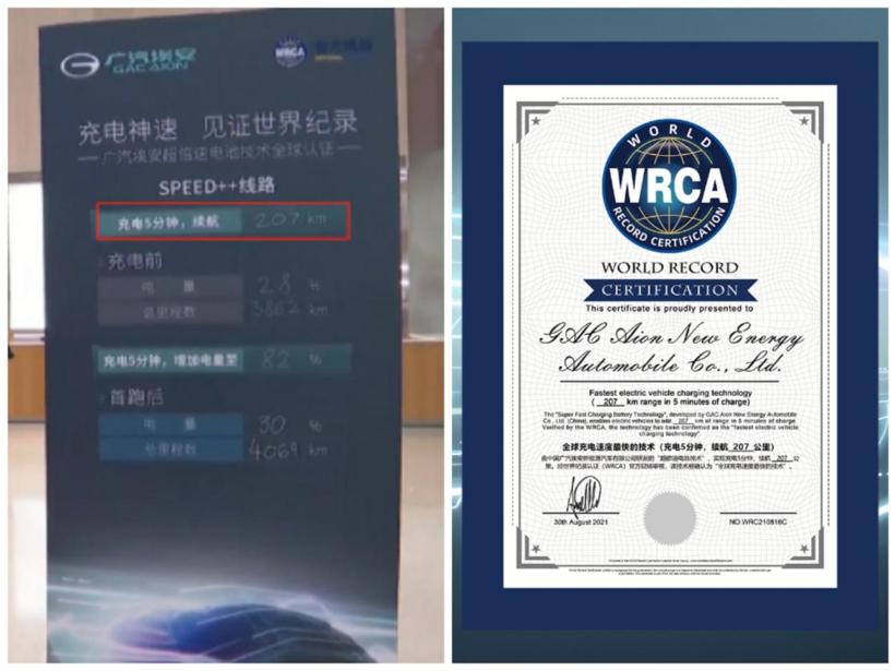 确实有些魔幻,在充电5分钟的情况下,尽管花费了4个多小时才跑完的207公里,但是这个成绩依旧可以称得上一句“了不起”。而且经过WRCA的权威认证,广汽埃安的充电技术切实打破了世界纪录,并一举取得了全球充电速度最快的技术这一殊荣。