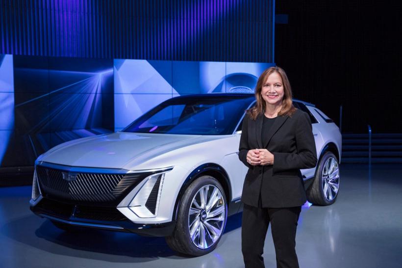 图为通用汽车董事长兼CEO玛丽·博拉及凯迪拉克Lyriq;图片源自通用汽车