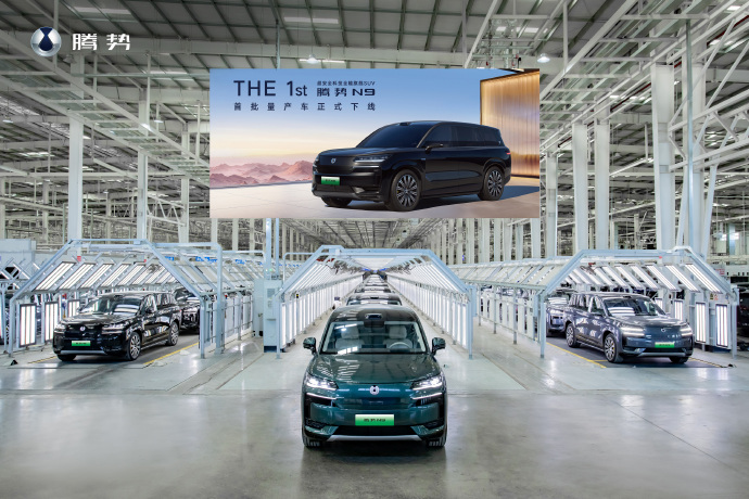 2月8日,腾势汽车宣布,旗下的N9车型的首批量产车正式下线。