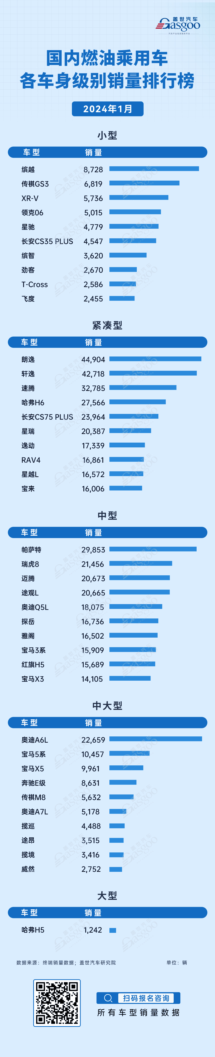 无论是新能源市场还是传统的燃油乘用车市场,2024年1月都呈现出了激烈而多元化的竞争态势。从小型车到大型车,每一个细分市场都有独特的领先者和挑战者。随着消费者需求的日益多样化和技术的不断进步,未来的市场竞争将更加激烈。