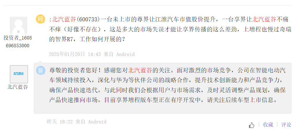 与此同时,北汽蓝谷称,公司会根据用户与市场需求,及时灵活调整产品规划,确保产品快速推向市场。目前享界增程版车型正在有序开发中,请关注后续车型上市信息。