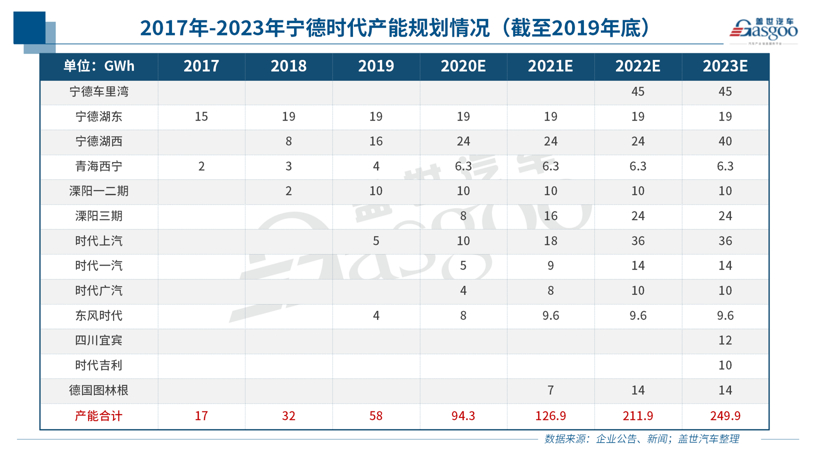 其次,从两家的产能布局来看,双方正在进行军备竞赛。按照双方各自规划,2020年二者的新产能都在100GWh左右。
