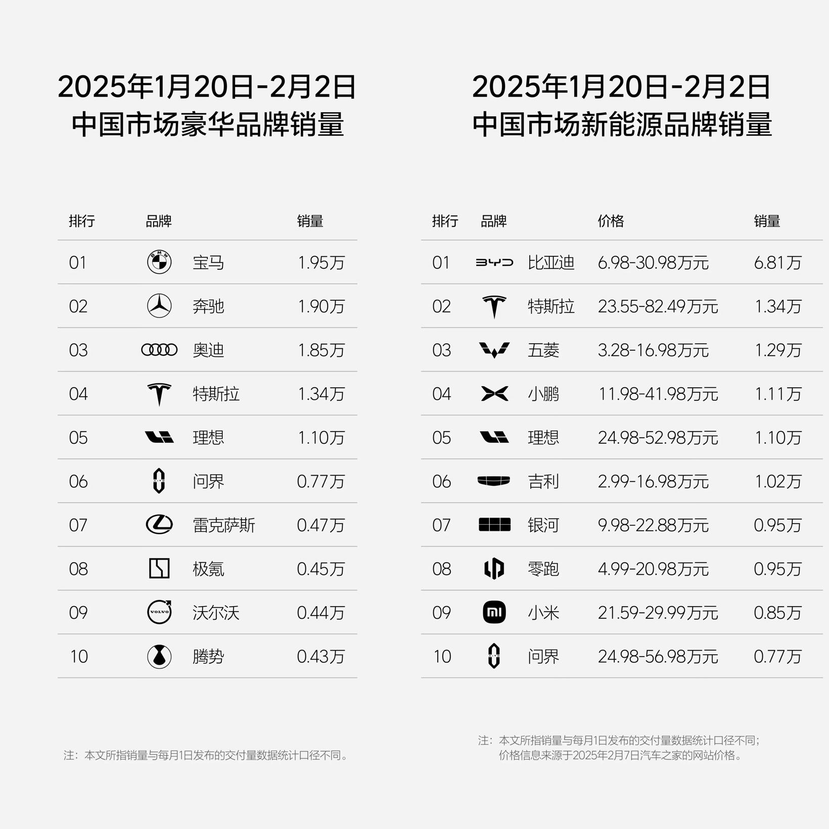 2月7日,理想汽车发布了2025年第4周至5周(1月20日-2月2日)的销量榜。