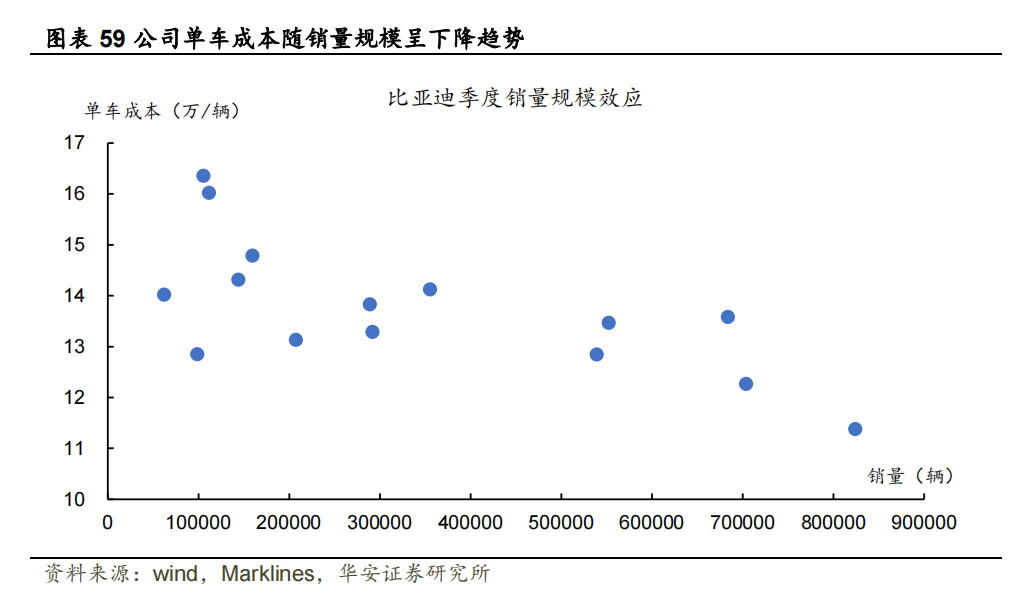 如今,比亚迪总体销量达到300万辆,但是销量规模处于马克西-西尔伯斯通曲线最小有效规模的左侧,规模效应释放过程仍在未来延续。也就是说,在后续产销规模继续提升的过程中,比亚迪单车成本还会继续下降。“这也足够说明规模化效应带来的好处,比亚迪现在通过大幅降价,提高产销规模,单车成本预计将继续下降,单车利润也还会继续保持增长。”王强表示。