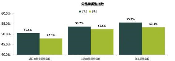 从分品牌类型指数看:8月进口&豪华品牌指数、主流合资品牌指数、自主品牌指数环比下降。芯片短缺对于豪华、合资品牌汽车供给影响较大,进口&豪华品牌库存预警指数进入荣枯线以下。