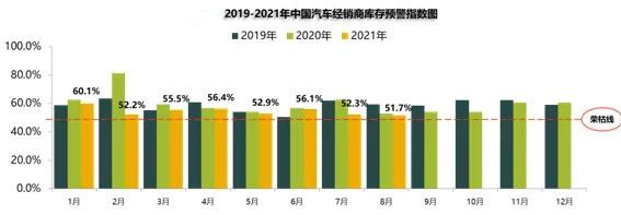 8月31日,中国汽车流通协会发布的最新一期“中国汽车经销商库存预警指数调查”。调查显示, 8月汽车经销商库存预警指数为51.7%,同比下降1.1个百分点,环比下降0.6个百分点。这也是今年以来库存预警指数最低的一个月,不过依然在荣枯线以上,处在不景气区间。