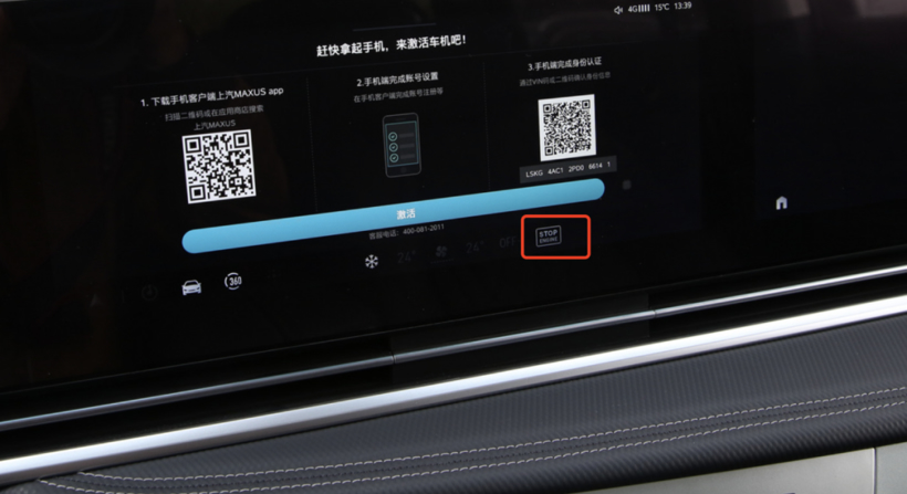 最终在针对整个车载中控台进行5分钟的厘米级搜索以后,终于在车载屏幕的右下角找到了一个长宽1cm的小方块,上面写着STOP/ENG INE。