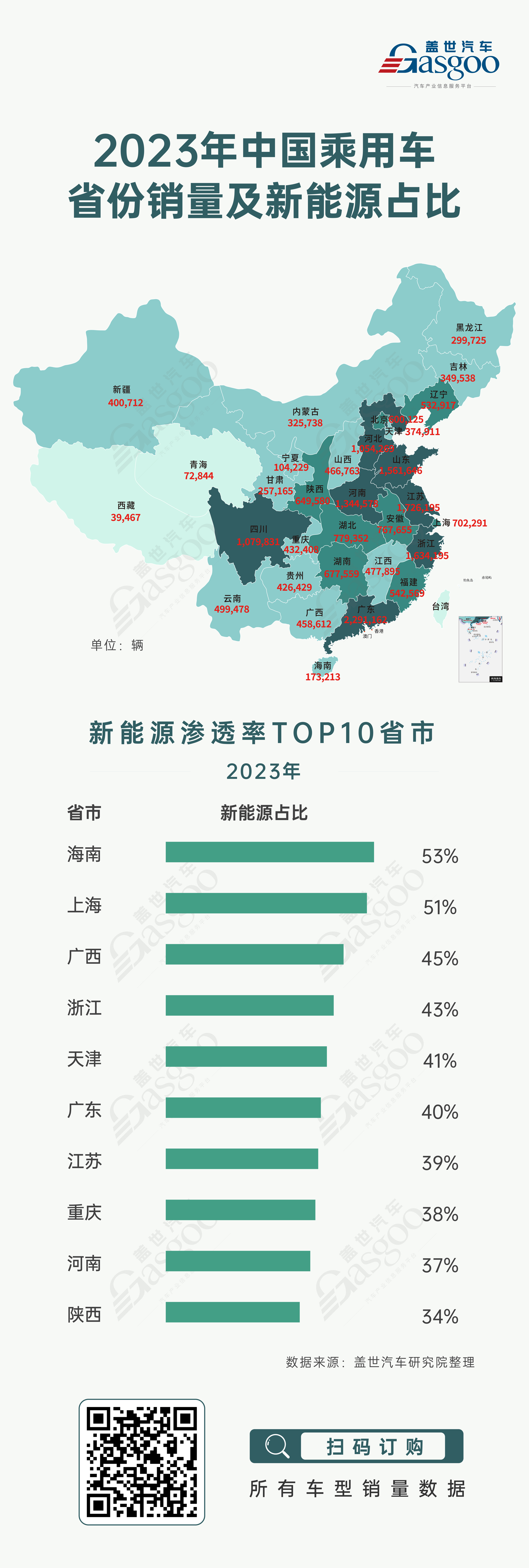 一、广东省销量第一,海南和上海新能源占比超50%